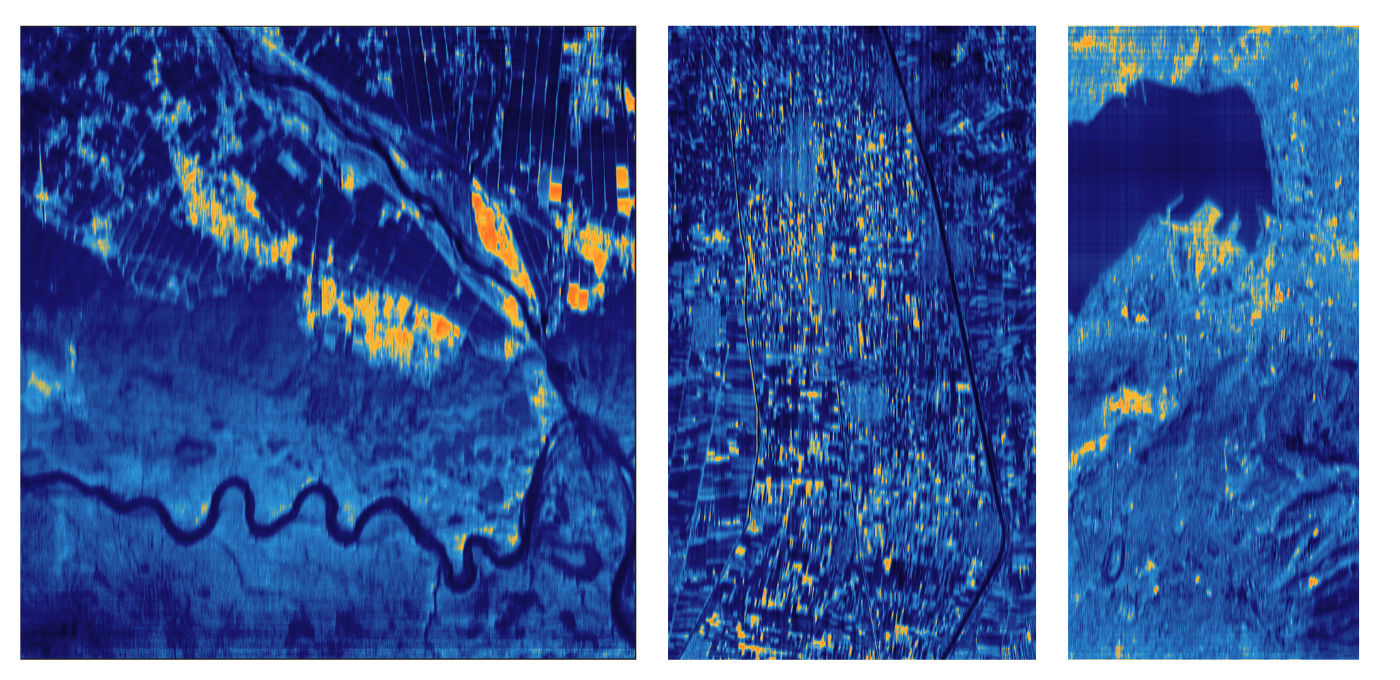 Even this early into imaging, the infrared images blew us away. Using a low-cost microbolometer — a fraction of the price of cooled IR sensors — we captured thermal signatures that showed ships in Tokyo Bay, steel processing facilities where we could distinguish individual coke ovens from their smokestacks, and distinct signatures between real vegetation and turf — a good proxy for camouflage detection. Day or night, clear as day.